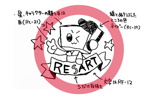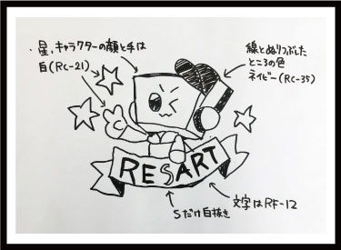 コピー用紙などの白い紙にサインペンなどの濃いペンでしっかりと手描きで描いたデザインを送っていただければ当店でデザインを整えさせていただきます。