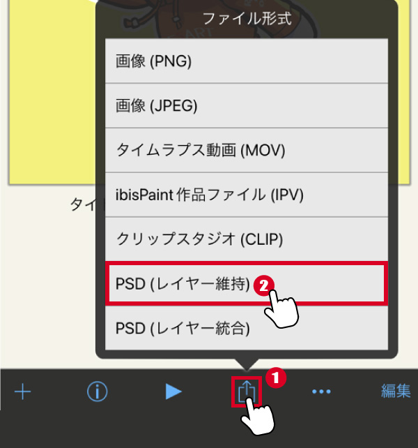 「PSD(レイヤー維持)」をタップして、」フォルダに保存で完了。