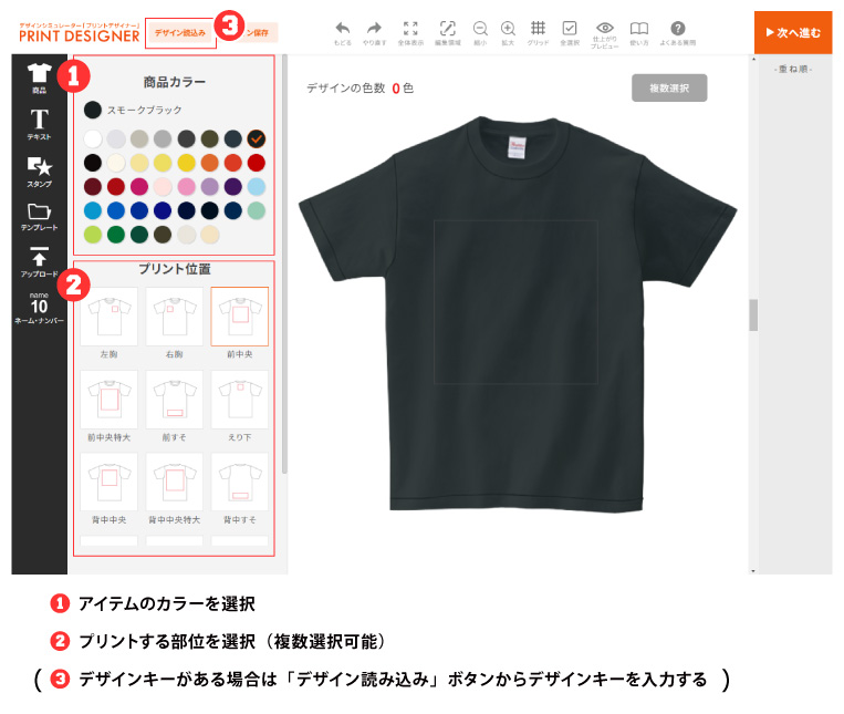 - プリントデザイナーに表示されるアイテムの色やプリントの色はイメージとなりますので、実際の色と誤差が生じる場合があります。