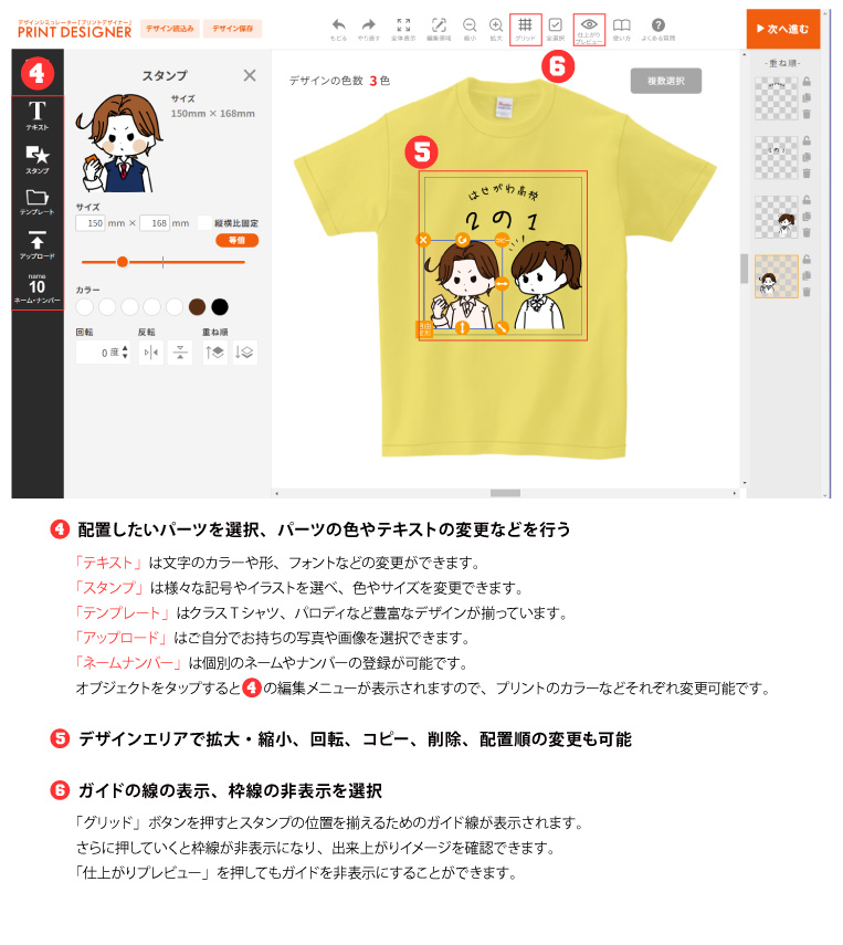 - プリントデザイナーをつかったデザインを作成することができます。