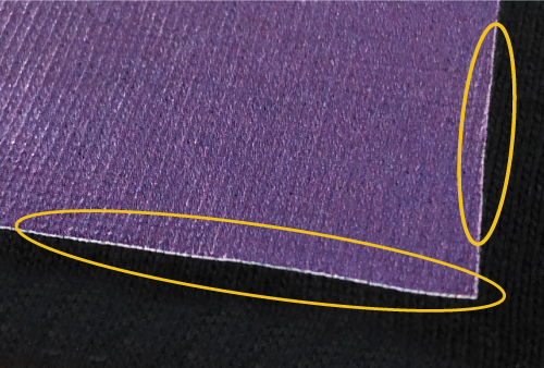 直接生地にプリントするため、素材の質感・風合いを生かした仕上がりになります。ただし、インクが生地に染み込むため全体的に色合いが暗めになります。