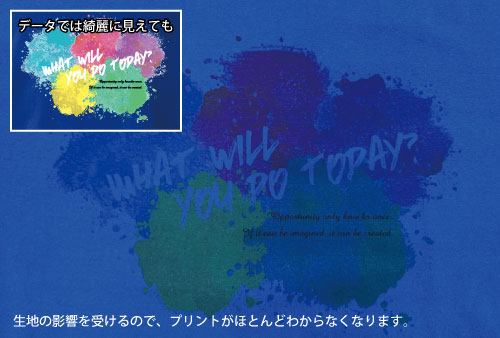 せっかくプリントした色が生地に沈んでしまいプリントされているのはわかりますがデザイン通りはっきりとしたプリントはされません。