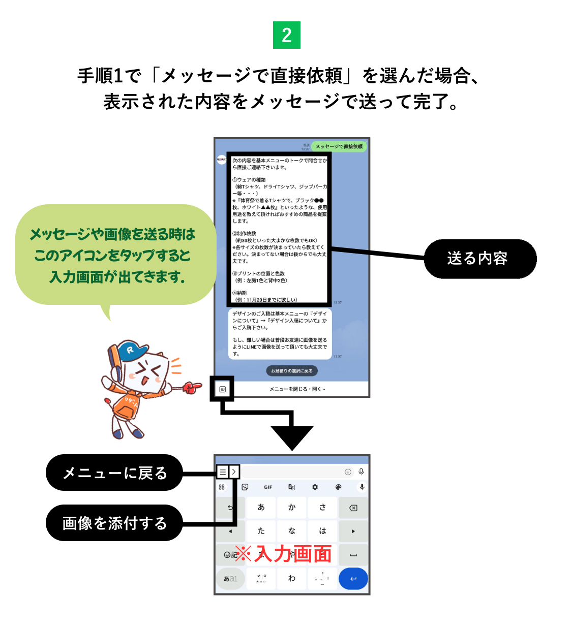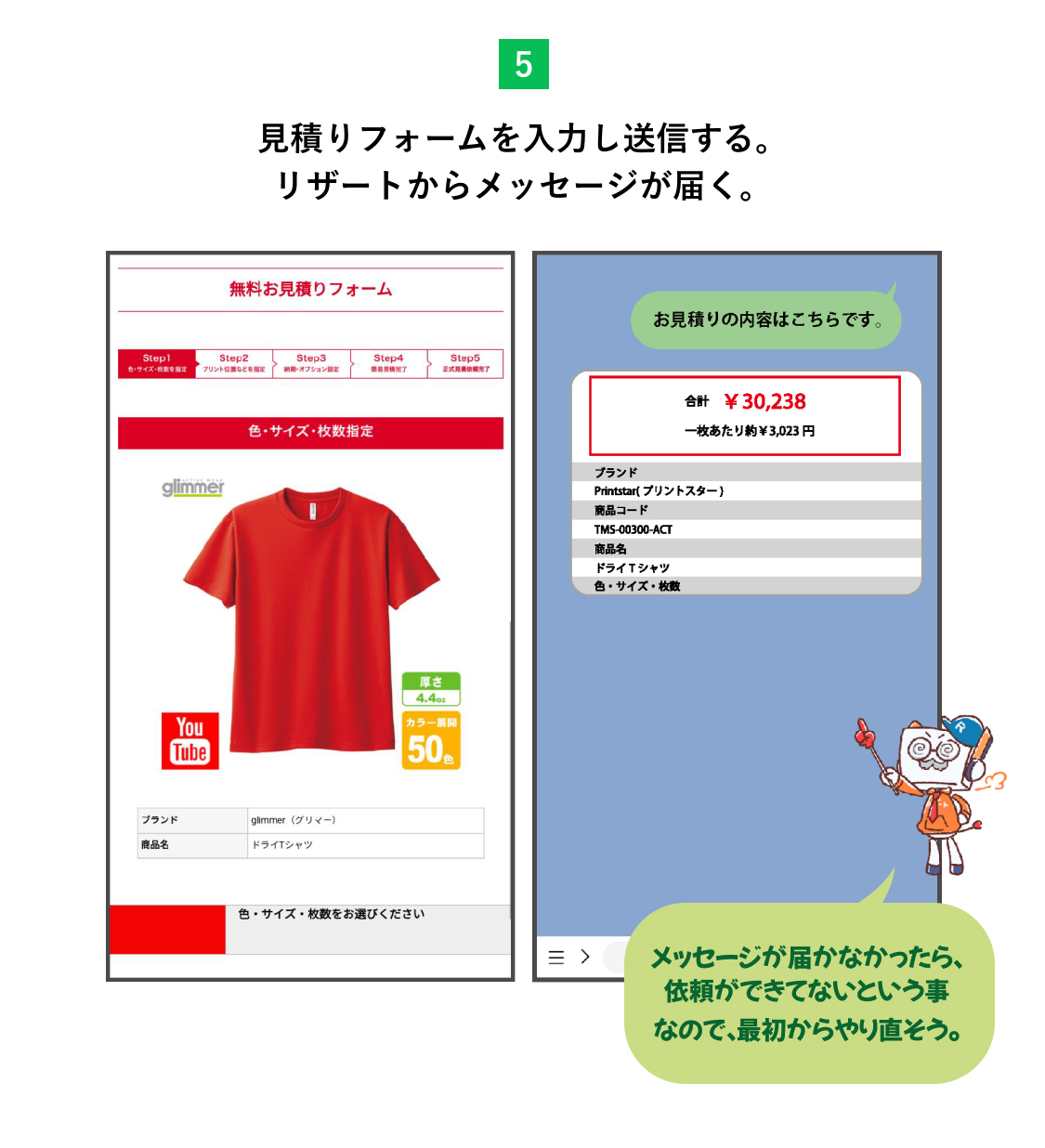 オリジナルウェアの制作の依頼から受け取りまで5つのステップに分かれます。