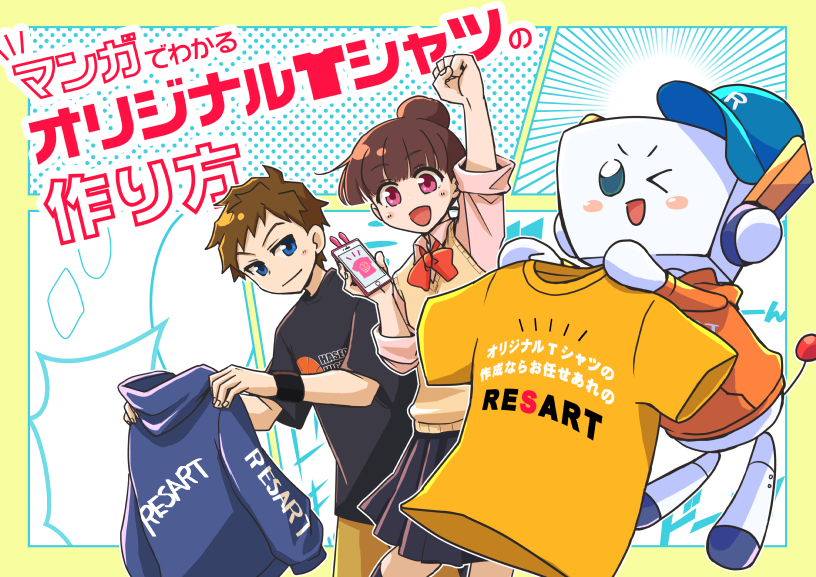 オリジナルTシャツの見積もりの依頼からご注文手続きまでの流れを分かりやすくマンガにしました。 『アイテムを選ぶ』から『商品お届け』までの5つのステップを1話ごとにわけてありますのでわかりやすくなってます。 ぜひご覧ください!