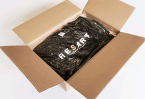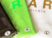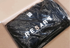 | 袋詰めした商品にサイズが分かるようにサイズ表記シールを貼り付けいたします。(※商品の右下に貼り付けいたします) | ||
