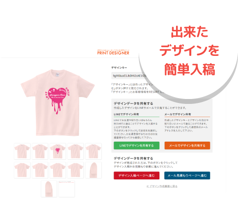 『デザインキー』とお客様情報をRESARTに送ることでデザインの入稿が完了します。