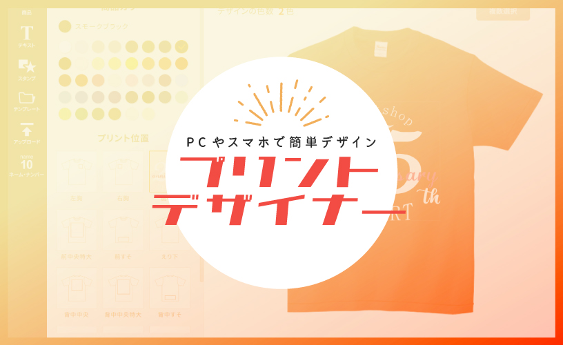デザインをソフトを持っていなくてもプリントデザイナーを使えば簡単にWEB上でデザインが作成できます。