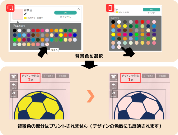 プリントを希望しない場合、カラーを選ぶ際「背景色」という項目を選べばその部分はプリントされません。