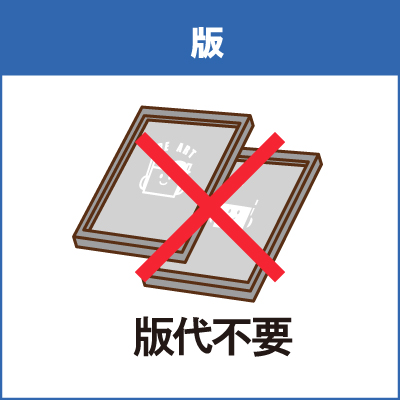 版の制作が不要で、フルカラーやグラデーションのプリントや細かいデザインもプリントできます。