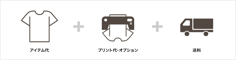 インクジェットプリントの料金設定は「アイテム代+プリント代・オプション代+送料」となります。